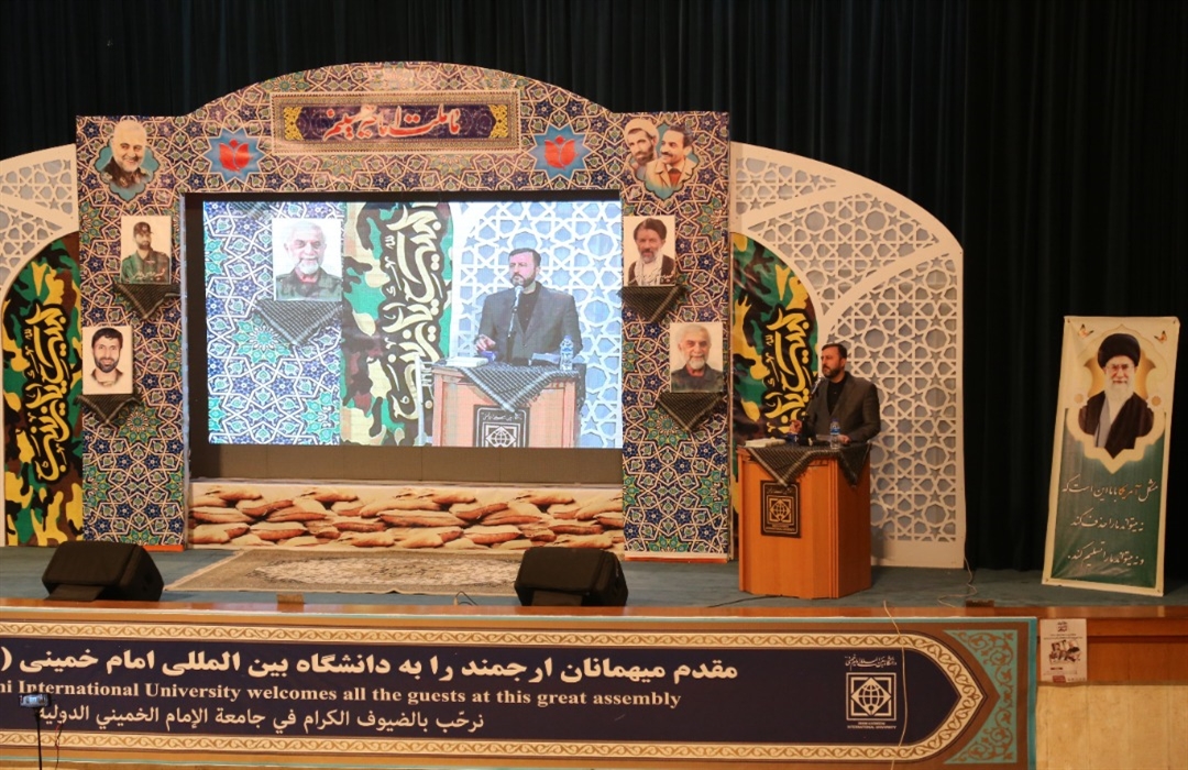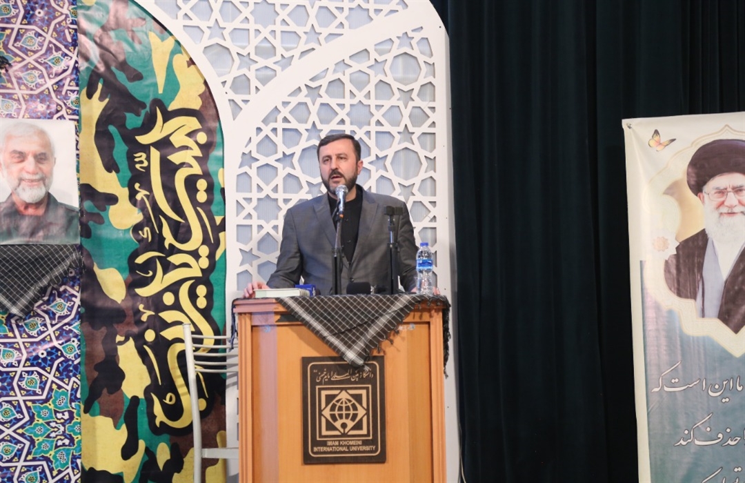 سخنرانی غریب آبادی در همایش بررسی ابعاد حقوقی جنایات دولت تروریست آمریکا علیه مردم ایران در دانشگاه بین المللی امام خمینی (ره) قزوین
