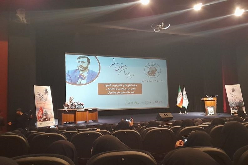 نخستین همایش بینالمللی «مرد میدان حقوق بشر» با حضور کاظم غریبآبادی، معاون امور بینالملل قوه قضاییه و دبیر ستاد حقوق بشر، کدخدایی، رئیس کمیته ویژه پیگیری حقوقی پرونده ترور سردار سلیمانی، سردار مسجدی، مشاور عالی فرمانده نیروی قدس سپاه پاسداران انقلاب اسلامی، یوسف الناصری، دبیرکل شورای علمای عراق و همچنین خانوادههای شهدای مدافع حرم امروز یکشنبه ۱۷ دی ماه ۱۴۰۲، در تالار ایوان شمس برگزار شد.