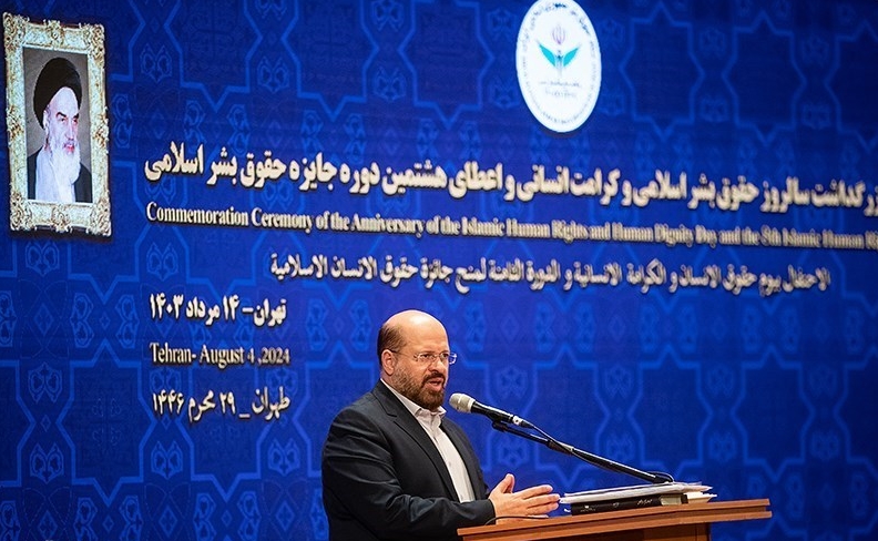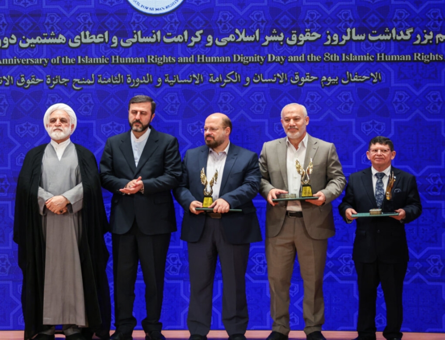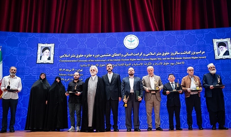 مراسم بزرگداشت روز حقوق بشر اسلامی و کرامت انسانی و اعطای هشتمین دوره جایزه حقوق بشر اسلامی با حضور حجتالاسلام والمسلمین محسنی اژهای رئیس قوه قضاییه، دبیر ستاد حقوق بشر و معاون امور بین الملل قوه قضائیه و مقامات لشگری و کشوری و سفرای کشورهای اسلامی مقیم در تهران، امروز یکشنبه (۱۴ مرداد ۱۴۰۳) در مجتمع فرهنگی شهید بهشتی برگزار شد.