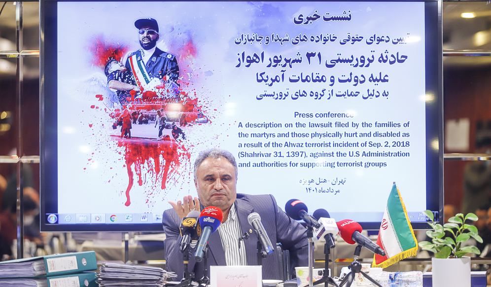 نشست خبری تبیین دعوای حقوقی خانواده شهدا و جانبازان حادثه تروریستی ۳۱ شهریور اهواز علیه دولت و مقامات آمریکا به دلیل حمایت از گروههای تروریستی برگزار شد.