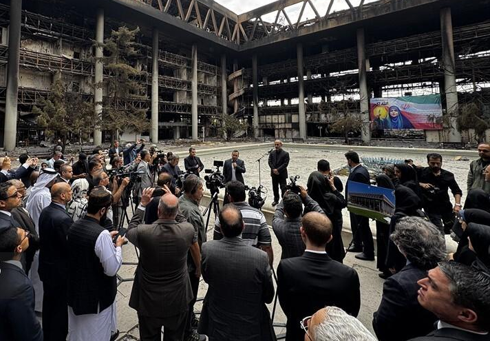 سپس دیپلماتها وارد بخشهای آسیبدیده ساختمان شدند. نمایندگان کشورها، شخصاً گستردگی تخریب، دیوارهای فرو ریخته، اسکلتهای پیچ خورده و فضای داخلی ویران شده را که روزی محل فعالیت اصحاب رسانه بود، از نزدیک مشاهده کردند.